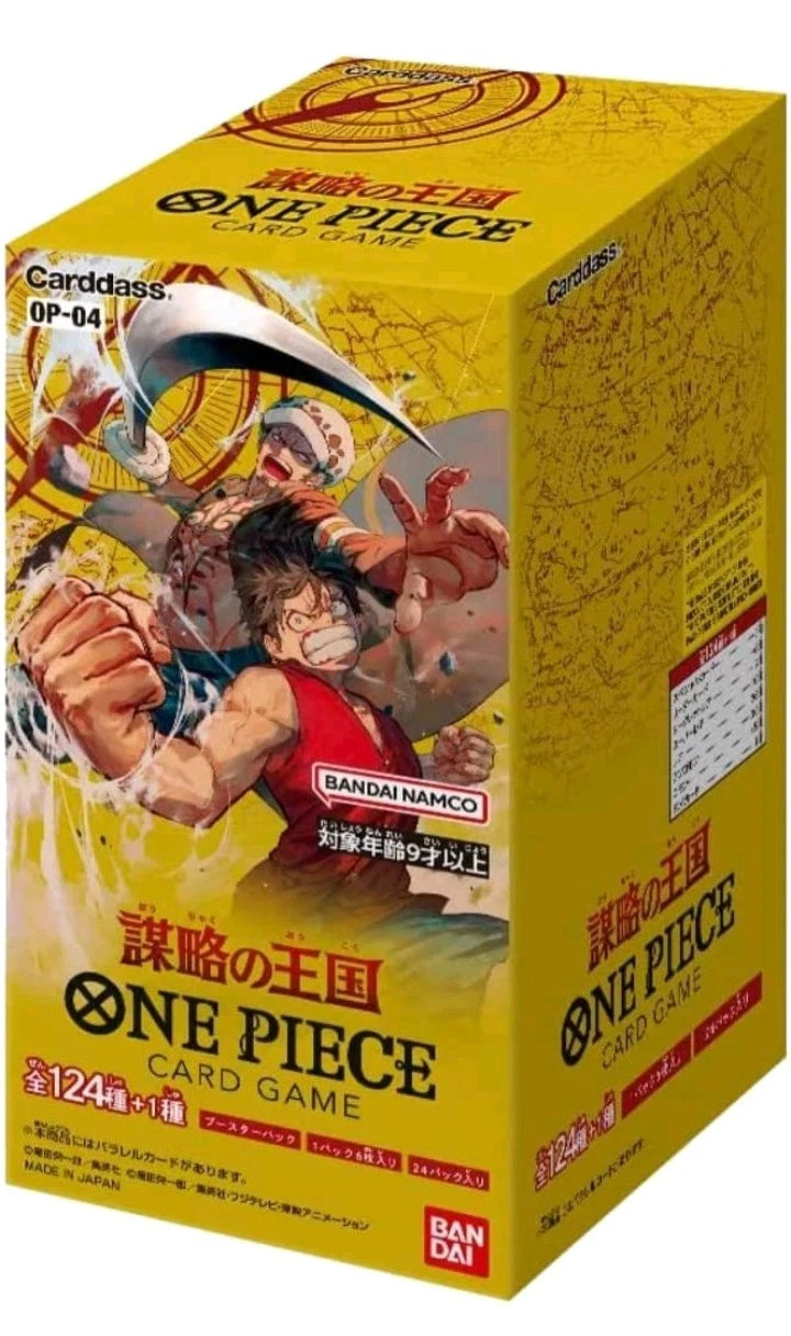 The One Piece TCG Kingdoms of Intrigue booster box (OP-04) dives into the political and royal power struggles across the One Piece world, featuring characters from the Alabasta and Dressrosa arcs such as Vivi, Doflamingo, Crocodile, and Rebecca. Each box includes multiple Japanese booster packs containing beautifully illustrated cards with premium printing quality. A perfect addition for both collectors and competitive players.
